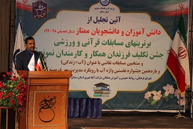 به گزارش روابط عمومی آبفای استان مدیر عامل شرکت ضمن خیر مقدم به حاضرین اظهار داشت : هرساله ، جشن دانش آموزی را به همراه خانواده های محترم آنان برگزار می کنیم ، خدا وند را شاکر هستیم که توفیق خدمتگزاری و همراهی در کنارشما عزیزان و مردم ولایت مدار وخوب استان ، برگزار می شود که از این بابت بسیار خوشحال وخرسندیم .